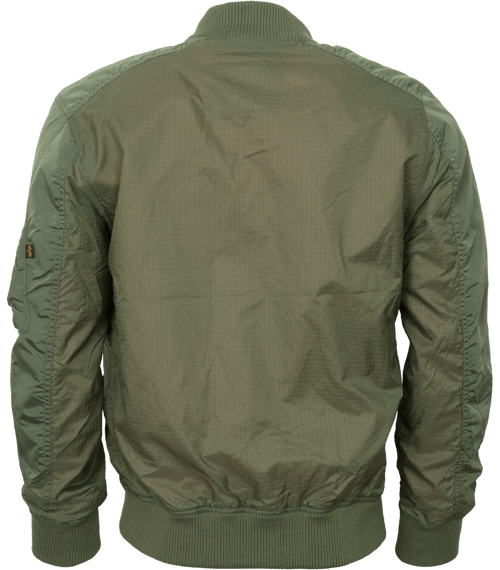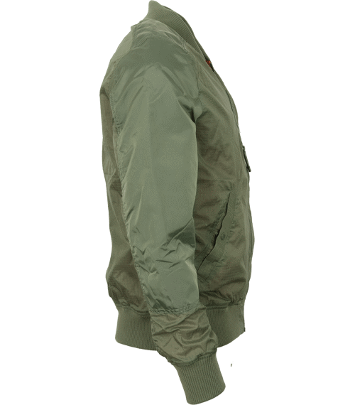 MA-1 TT postrádá klasickou pevnou strukturu bomberů, sedí na tělo díky užšímu střihu slim fit. Má pevnější vyztužení ramen a horní části rukávů, takže ho jen tak neprošoupete neustálým nasazováním vašeho oblíbeného batohu nebo tašky přes rameno až si budete na fesťáku kupovat pití. Ústředním materiálem tohoto bomberu je lehký letecký nylon v rip-stop úpravě.