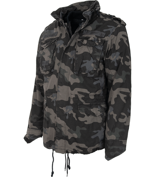 Teplá zimní bunda s odnímatelnou vložkou ve stylu armádní bundy M65. Ikonický vzhled a zpracování v mírně obnošeném stylu vintage.