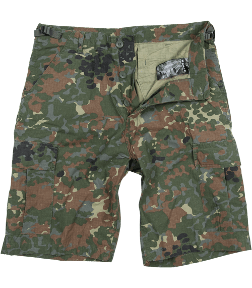 • Kraťasy ve stylu klasických dlouhých kalhot polní bojové uniformy US ARMY (kalhoty US ARMY (BDU - Battle Dress Uniform). Jsou zhotoveny z lehké bavlny opatřené zpevňující osnovou RipStop, která brání šíření případných trhlin.