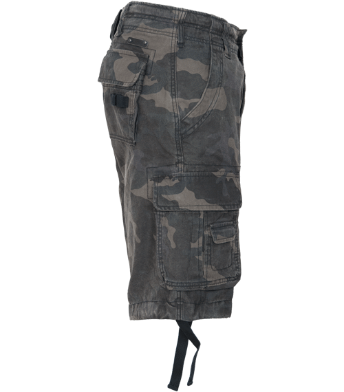 •  Kraťasy s bočními vakovitými kapsami jsou vyrobeny z vysoce kvalitní bavlny a jejich uvolněný střih je zárukou pohodlného nošení. Na pravé stehenní kapse najdete potisk inspirovaný armádním oblečením. Obvod v pase můžete upravit stahovací tkanicí aniž byste použili opasek, přestože i pro něj jsou připravena poutka.